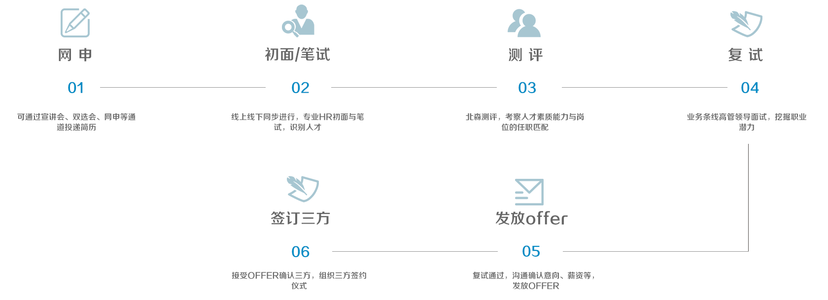職業發展路徑包括管理、營銷、專業、技術、技能五個通道路徑,可根據自身職業發展規劃選擇在相應路徑上不斷成長發展,也可在成長過程中,結合自身意愿,通過自身努力,跨路徑成長